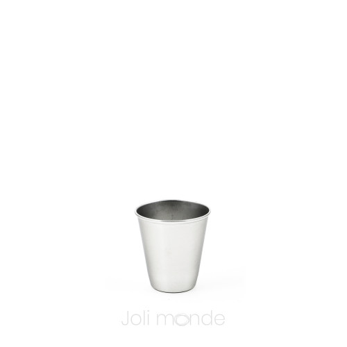 La Mini timbale inox 75 ml - JOLI MONDENe plus craindre la toxicité du plastique, ni la fragilité du verre... Léger, stable et facile à tenir par les petites mainsInox 18/8 simple paroi.Hauteur 5.7 cm . Diamètres 5 cm / 3.2 cm . Contenance 75ml . Poids 25gA partir de 3 ans.